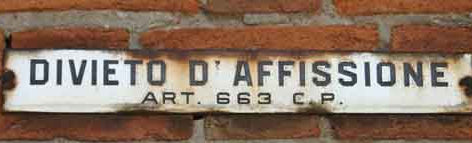 Perchè “Divieto d’Affissione”? perchè la targa di metallo con il numero del Codice Penale l’ho avuta per decenni in casa, attaccata ad una parete, affinchè mi fosse chiaro che non dovevo riempirla ….. la parete.